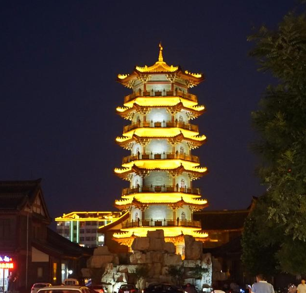夜幕下,木塔散发着辉煌的光芒,荷塘里绽放的荷花,漂浮的荷叶,灯光的倒影,给人以迷茫、梦幻的感觉。随着摩肩接踵的人流,我们再一次来到南阳河畔,这里聚满了纳凉和欣赏音乐喷泉的人们。随着音乐响起,摇曳的喷泉不断地变换优美的身姿,河面上飘飘荡荡、美轮美奂的喷泉,引起人们一阵阵的赞叹。夜色中的宋城除了喧嚣外更多了些妩媚和朦胧,多了些时尚与休闲……走过青石板的古街,走过北国 江南 的偶园,再走进仿古宋城,我们犹如穿越时空隧道,感受到了青州的古老沧桑,感受到青州的人杰地灵,也感受到青州的青春时尚与勃勃生机。