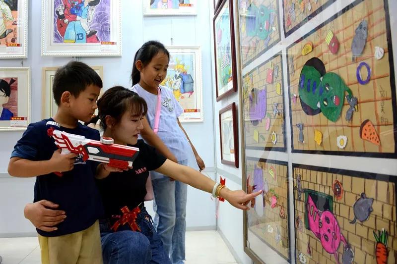 开幕仪式后,大家前往文化馆四楼书画展厅参观。本次展览共展出书画优秀作品800余件,内容包括美术和书法两大艺术门类,各种少儿艺术品、户外写生、课堂创作、臻品临摹作品等,他们的作品形神兼备、惟妙惟肖、妙趣生动、活灵活现、别有洞天……集中展示了我市在青少年书画艺术教育方面所取得的优秀成果。这些参展的绘画作品画种齐全,表现手法多样,或写实或会意,或浓墨重彩或写意挥洒,创意大胆,构思巧妙具有极强的艺术表现力和艺术感染力!虽然作品笔触稚嫩、画面朴拙,但艺术韵味十足,色彩明快,稚趣横生,构成少儿书画独有的天真意趣,表现了少年儿童天真烂漫的思想感情和大胆新奇的丰富想象力!
