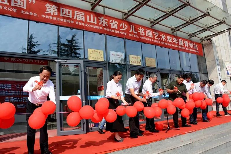 秋高气爽,群贤毕至,翰墨流香。9月21日上午,“盛世国庆·梦想成真”庆祝中华人民共和国成立70周年暨2019山东省青少年美术书法双年展(青州站)在青州市文化馆隆重开幕。出席开幕式的领导有山东省文联文艺部主任王德斌,山东省文化馆党总支成员、办公室主任李思峰,山东省文联少儿画协副会长兼秘书长李子牛,山东省文联少儿书画协会副会长姜长胜,共青团青州市委书记腾辉,青州市文化和旅游局副局长郑淑兰,青州市文化和旅游局一级主任科员许兆营,青州市阅读联盟主席、阅读学会主席刘元民,青州市书协党总支书记兼常务副主席马传盈,山东省文联少儿画协副会长、青州市青年书画家协会主席、朝阳美校校长高立鹏。开幕式共有各媒体记者、学生家长等1000余人参加。
