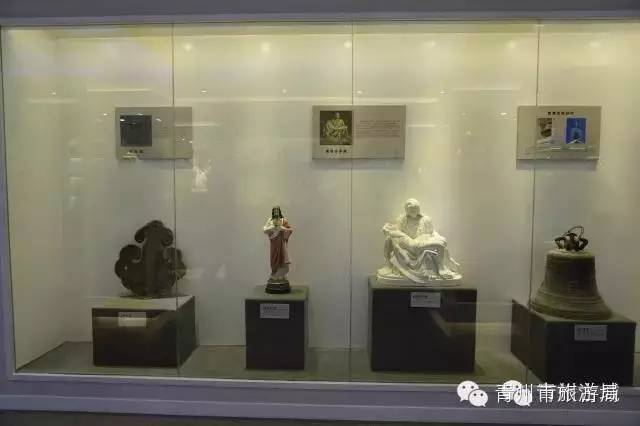 在天主堂的南边就是天主教堂博物馆。博物馆共分为两个展馆——序馆和正馆。序馆介绍的是天主教的起源和发展史,以及来到青州的历史。博物馆的正馆展出的是天主教的文化和教会礼仪用品。