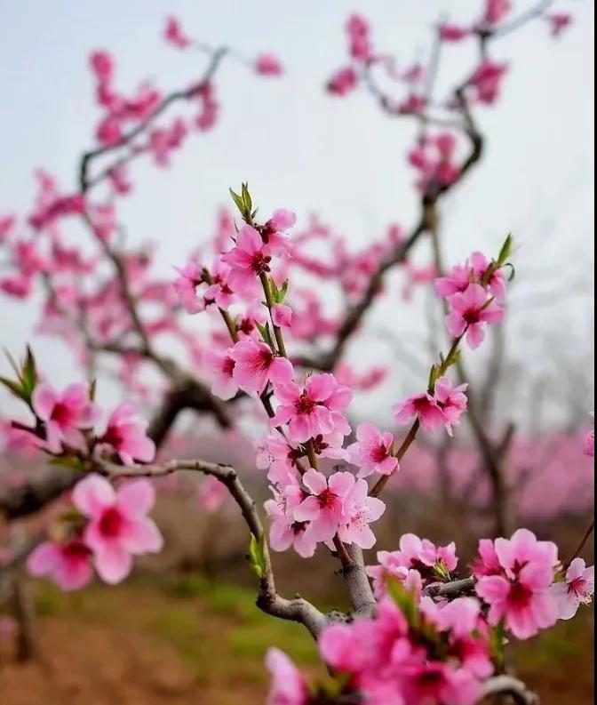 千亩桃花,浑然一体,盛开时节,蔚为壮观,真是:满树烂漫藏不住,姹紫嫣红争春来,身临其境,徜徉在花的海洋,陶醉于和煦的春风,令人心旷神怡,流连忘返。