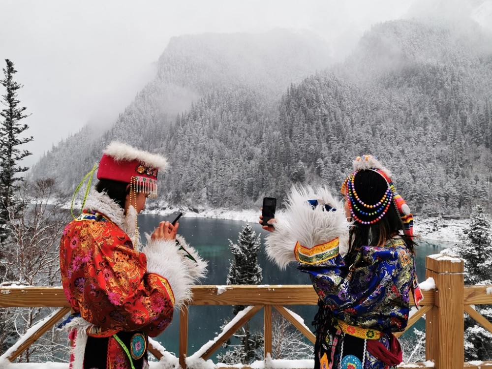 “今天的降雪有3厘米厚,主要集中在下季节海以上,以及五花海和五花海以上的区域。”九寨沟景区管理局一位工作人员介绍,这已是景区连续三天降雪了,“预计明后天还要降雪。”