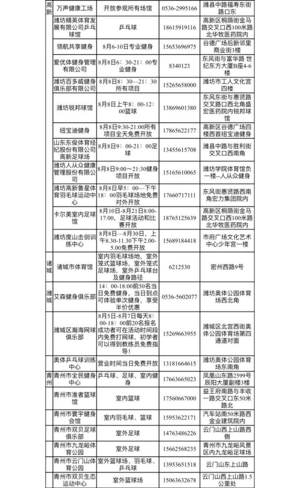 8月8日是全国第十二个全民健身日,潍坊全市123家体育场馆今天免费对外开放!广大市民可以挑选自己喜爱的健身项目进行免费体验!周末带上家人孩子,锻炼起来吧!