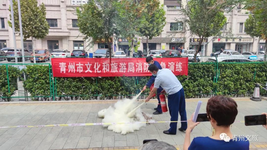 会议由青州市旅发委监管运行部部长陈青春主持,文化和旅游局二级主任科员付伟传达了潍坊市文旅局下发的《潍坊市文化和旅游领域安全隐患拉网式大排查专项行动方案》,邀请山东青年政治学院现代服务管理学院张青教授进行文化和旅游领域安全生产专项培训,会后由青州市消防大队官兵对各文化和旅游企业参会人员进行灭火器使用培训。