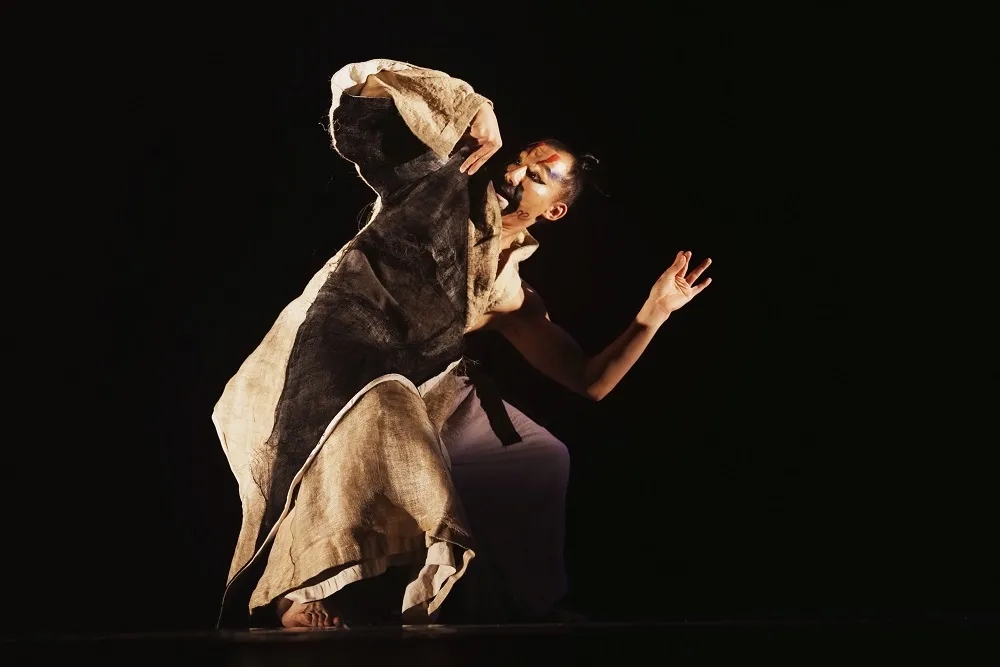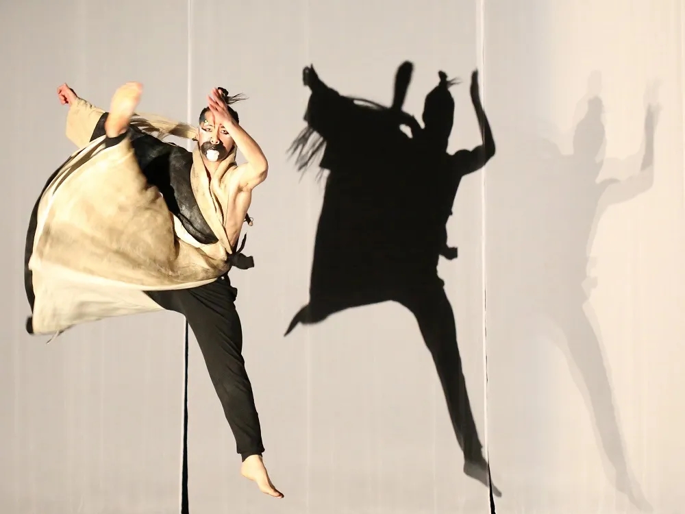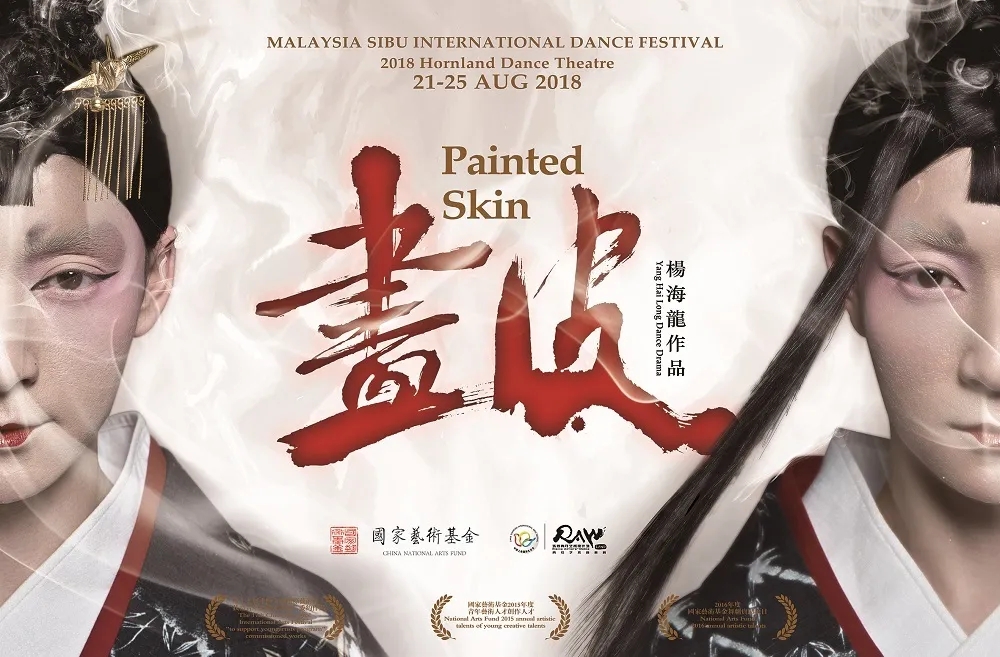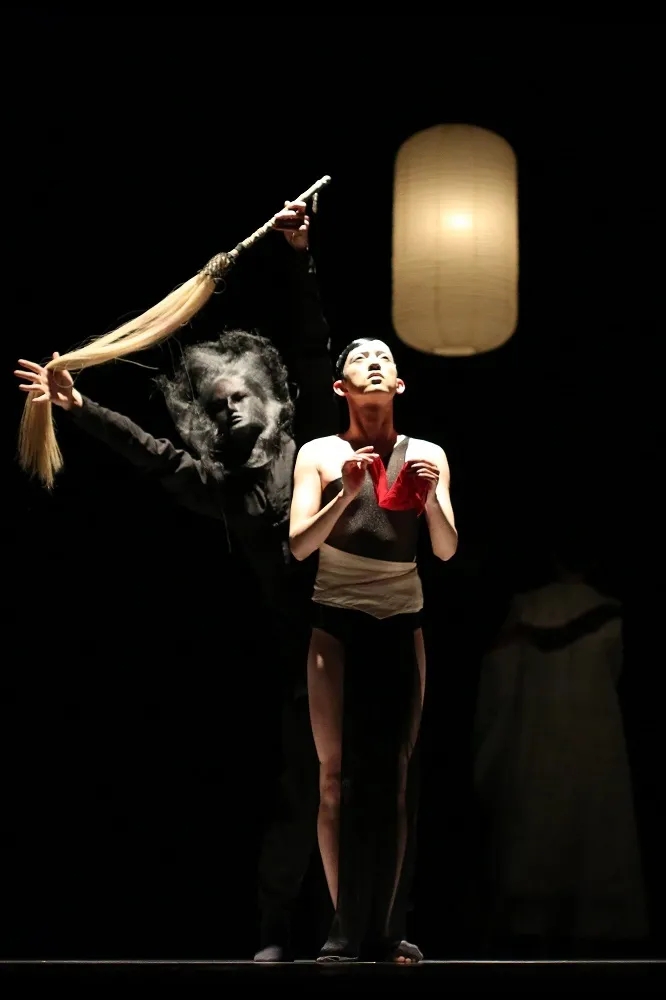 《画皮》以现代舞为根基吸收容纳众之所长,这与歌舞伎通过"舞"来传达故事情节是共通的,在表演中也会融入更多中国传统戏曲的程式,创造带有东方质感的舞台形象。在全男班《画皮》中,浓重的白色妆面犹如一张完美无瑕的美人皮,而角色饰演过程中性别的颠倒,更加增强舞台上的抽离感,制造出更加浓厚的梦幻、诡异气质。