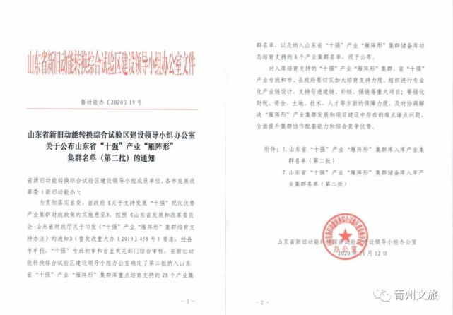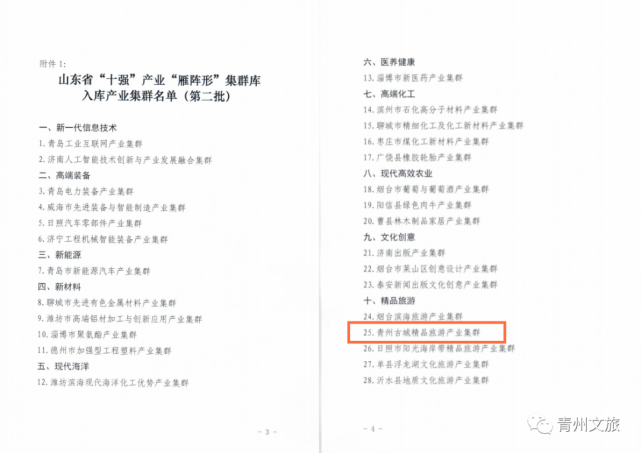 近日,山东省新旧动能转换综合实验区建设领导小组办公室公布山东省“十强”产业“雁阵型”集群名单(第二批),青州古城精品旅游产业集群入选。