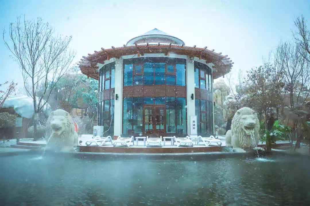 11月23日晚,记者团一行到达潍坊弘润温泉小镇,体验当地特色冬季旅游项目。室外温泉区在青葱山林之中融入滔滔汤泉,设有别具韵味的瀑布浴、美肤养颜的精油浴、温柔浪漫的花瓣浴、养生健体的药浴、尽享天然溶洞浴等50余个特色温泉汤池。
