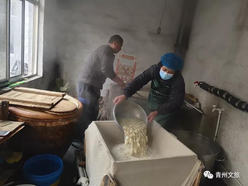 民谚称:“腊月二十五,推磨做豆腐。”豆腐是过年的主打菜,旧年月吃得起肉的人家不多,就指望豆腐,豆腐是庙子人在条件艰苦的岁月里,优质蛋白的主要来源。同时豆腐的谐音“都福”,都有福之意。现在,为了追求经济效益,大部分地方都没有了传统的手工豆腐,但是庙子镇还一直延续古法,从推磨磨豆浆开始,一步一步通过复杂的手工流程,只为了寻找那一份时光的味道。腊月二十五,家家户户开始推磨做豆腐,村里到处都飘散着热豆腐的清香,年味就这么来了。
