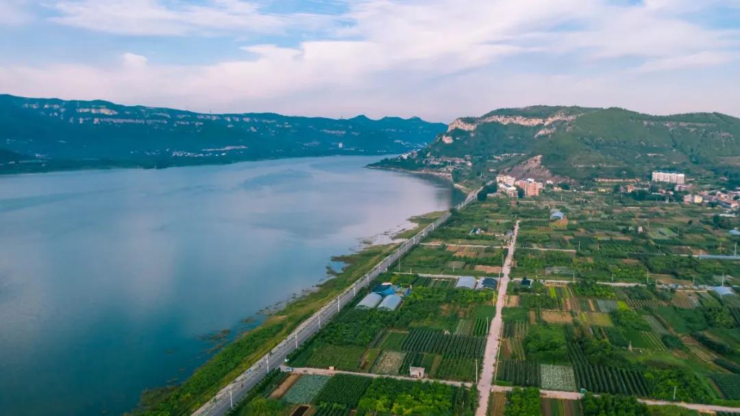 △//水库南边多是菜园大棚,每天都向城市与各村提供优质蔬菜;远处的山连绵不绝,树也生得繁茂