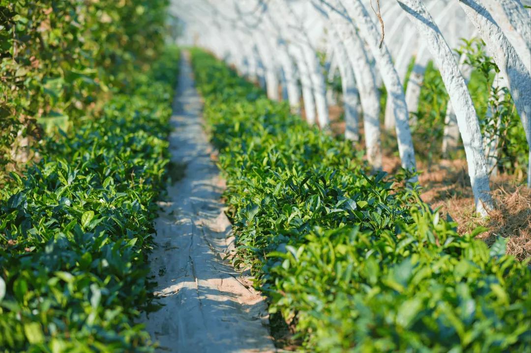 △//茶树在阳光的哺育下长得盎然,一株一株,枝叶繁茂