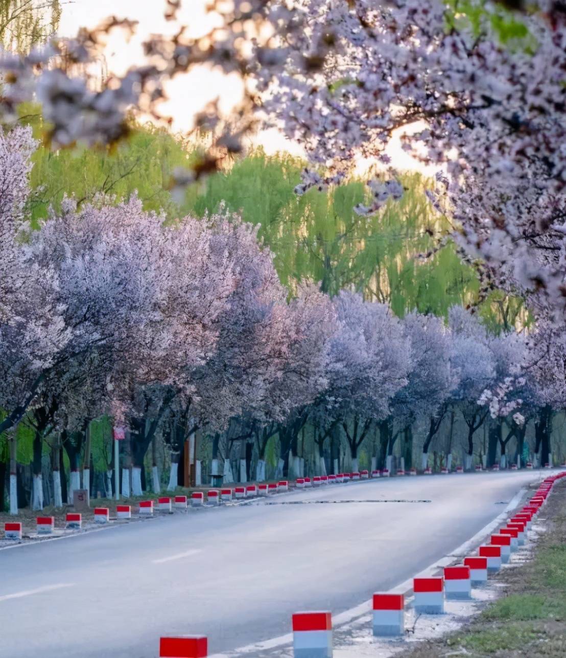 这条紫叶李大道,从建邦大桥往西一直延伸到玉清湖水库。慢慢地骑过满是繁花的黄河大坝,烂漫多姿的紫叶李,在阳光的投射下如云霞般绚烂。