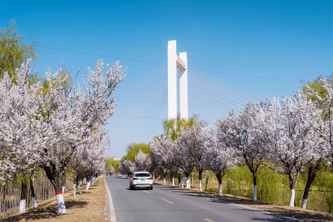这时,你骑着单车,我带着相机,一起相约在黄河大坝,看紫叶李明艳芳菲,来一场花与春之间的单车穿梭之旅再好不过了!