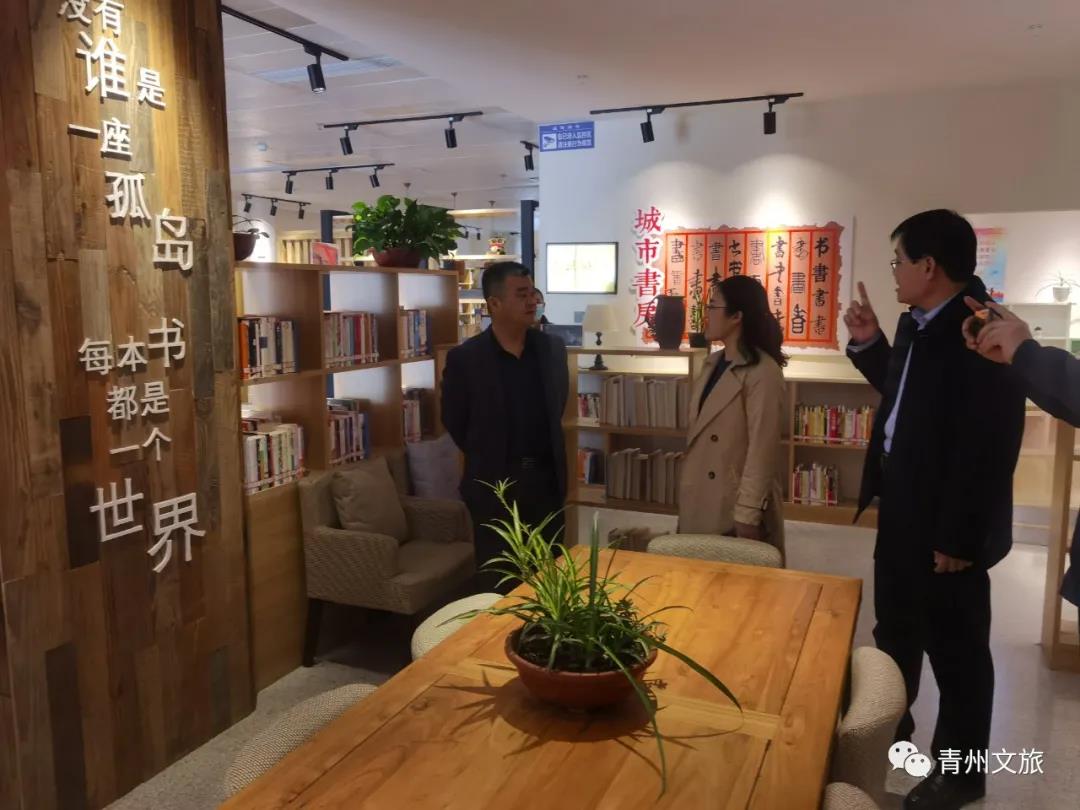 调研组先后实地参观了青州市游客服务中心文旅空间、图书馆、东部城市书房、王府街道文化站、青州微笑非遗空间等,听取有关情况介绍,详细了解了青州市文化旅游公共服务机构功能融合工作开展情况,并给予充分肯定和高度赞赏。