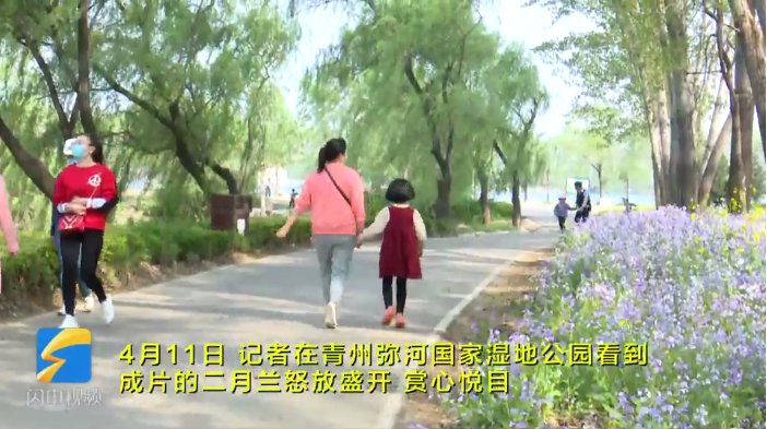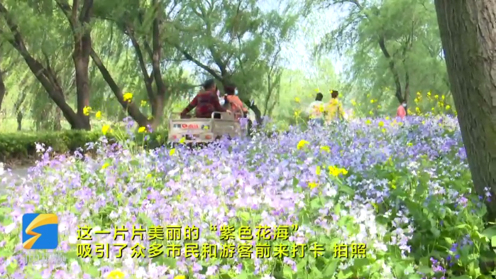 青州弥河国家湿地公园 二月兰怒放盛开变成“紫色花海”