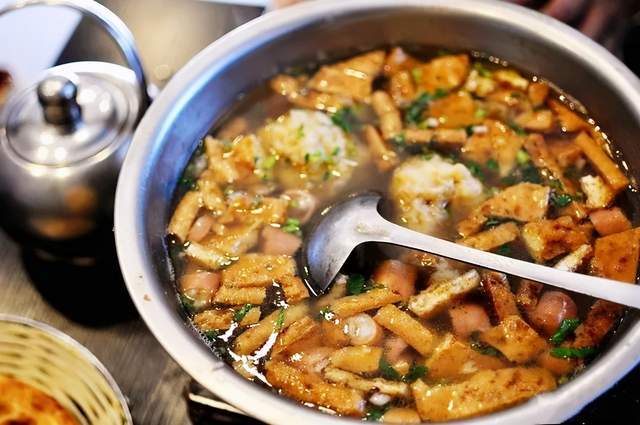 另一口“周村煮锅”是周村人家须臾不可离的日常佳肴,煮锅内一般放置肉丸子、豆腐丸子、萝卜丸子、炸豆腐页、肥肠等菜肴,是来了周村必尝的特色美食!