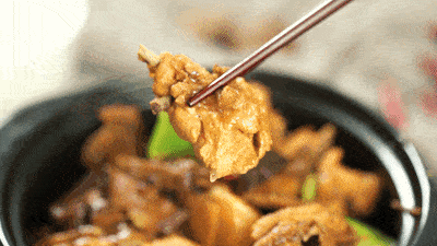 一块长条五花肉,浓油赤酱、五花三层、入口即化,肥肉不腻,连肉带汤浇在白米饭上,这滋味儿,就一个字,香!