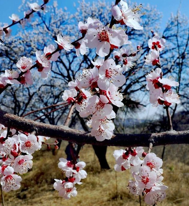 每年杏花开放的时节,一地里望去,满山满崖满坡满沟,杏树们成千成万价盛开,花团纷披,若幻若霞,四野粉黛,端的沁人心怀,入得杏林里更美哉不能自已,故沸扬传开去,仅仅一年半载已闻名全国,成为游人如织的好地方了。