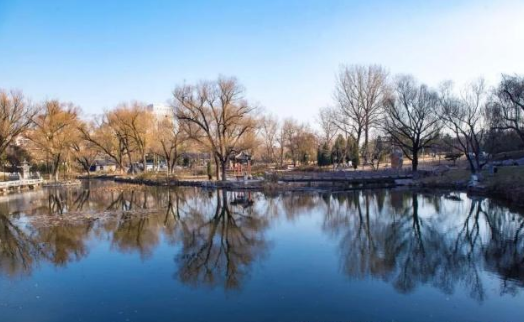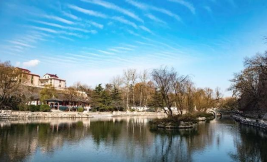 冬日里,这里格外静谧、美好,明镜般的湖水倒映着岸边的风景,蓝蓝的天空上随意飘着几缕白云,悠闲自在~