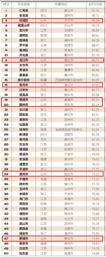山东省有18县市入榜!