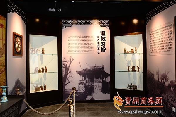 展馆由传统的古建筑院落组成,曲径回廊,古色古香,共分10个展厅,分别是:靑齐沃野、海岱珠玑、信美东方、物华天宝、云门璧合、三齐古风、青社华章、回族掇英、旗城胜迹、众善所归。展览采用图画、雕塑、实物、音像等现在手段全面地展示了青州悠久的历史文化和丰富的当地民众习俗,具有较高的观赏性。(曾宪升 文/摄)