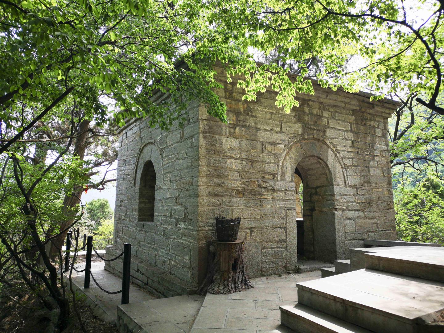 水帘洞位于仰天山山阴,口大洞深,有水汩汩流出。甚为凉爽,洞壁有题刻,系赵明诚手书。在此环视群山,感觉甚佳。离开水帘洞,按图索骥,到文殊寺。文殊寺,又称仰天寺,始建于北宋,是我国现存三大文殊寺院之一。