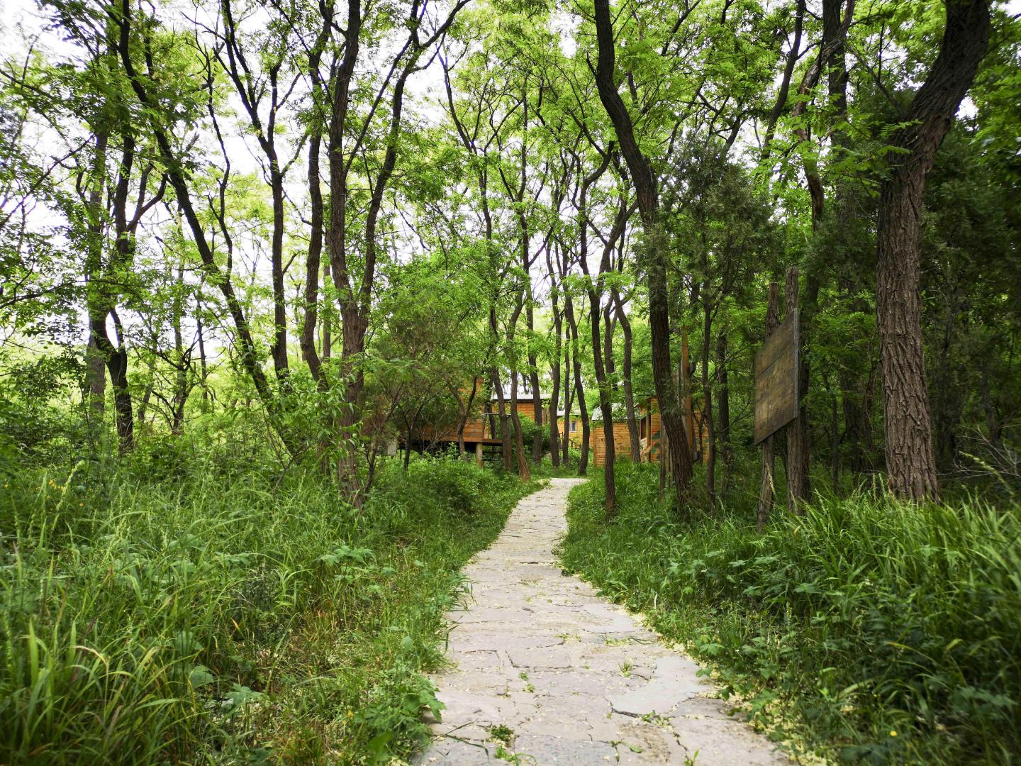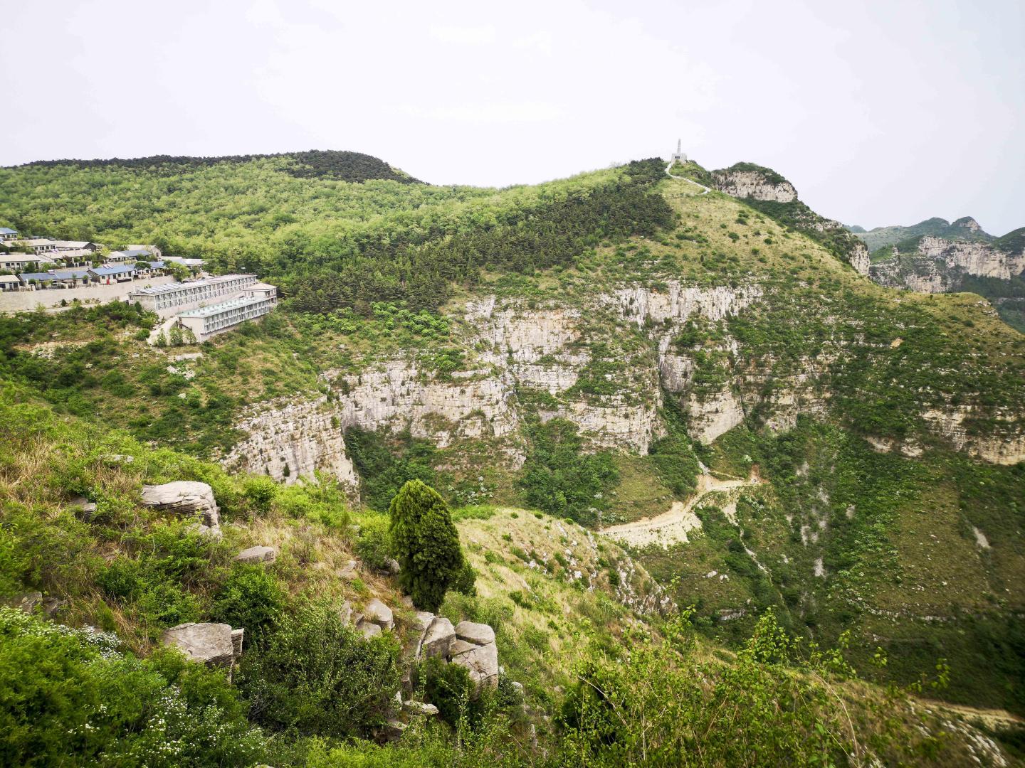 把车停在山上的停车场之后,就可徒步山中了。先在索道旁极目远眺,山脉起伏连绵尽收眼底。不一会儿,齐长城就会出现在眼前。齐长城位于景区桃花坡度假村南面,西接淄博,东连临朐,由天然形成的悬崖峭壁构成,以山代墙。