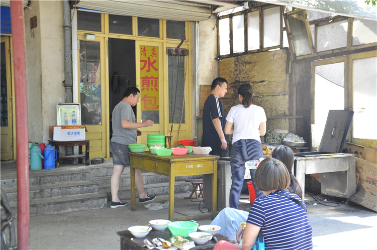 煎包店位于青州中医院南边的青龙街内,海岱中路与青龙街交叉路口向西300米路北,煎包分为牛肉陷与豆腐陷两种,价格均为6毛一个,便宜实惠,店内还提供豆腐脑,价格为一块钱一碗,一个人一顿饭消费10元左右。