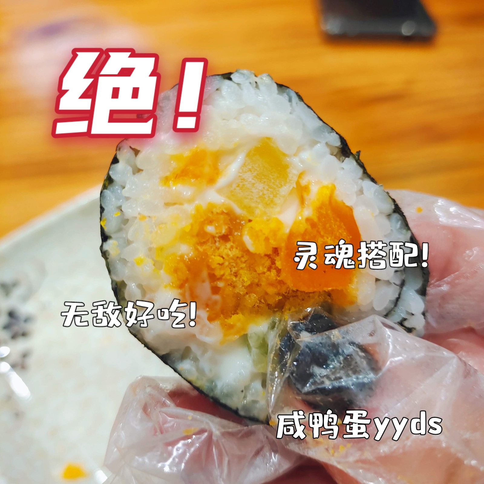 强烈推荐咸蛋黄,绝绝子,大粒的蛋黄颗粒在嘴里咀嚼阵阵留香,他家的米饭应该和别家最不相同,所以属于越嚼越香的类型。